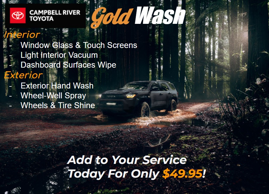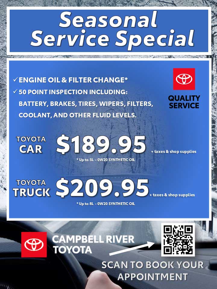 At Campbell River Toyota, our commitment lies in optimizing your Toyota’s performance through genuine parts meticulously designed for your vehicle’s exact specifications. Visit our Genuine Toyota Parts specials webpage to access exclusive offers and savings tailored to support your Toyota’s longevity, dependability, and safety.